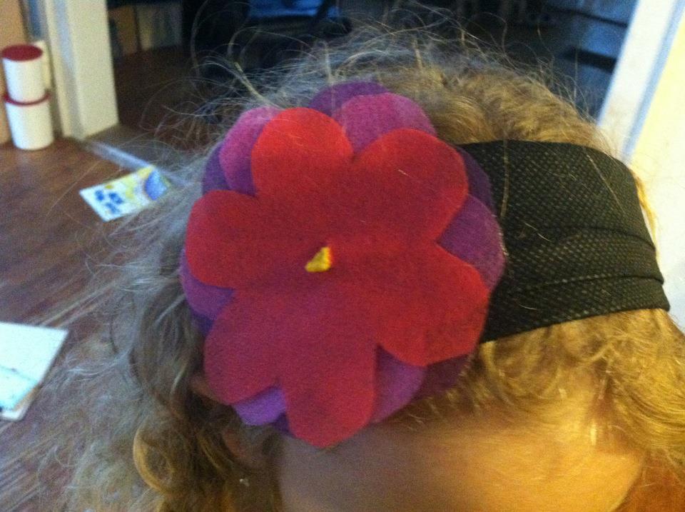 I also used a cookie cutter to create the flowers on my daughter’s headband. I’ve found the headband does not slide around on her head, I believe due to the texture of Smart Fab. This is wonderful as most fabric headbands slide around, and the plastic headbands are sure to leave a headache after a day’s use.