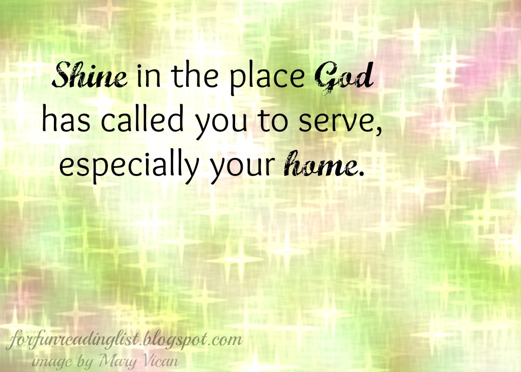 Beautiful thoughts – thanks for sharing. I love the idea of “shining” in this place God has called us to serve, and making our homes beautiful places for our families.
