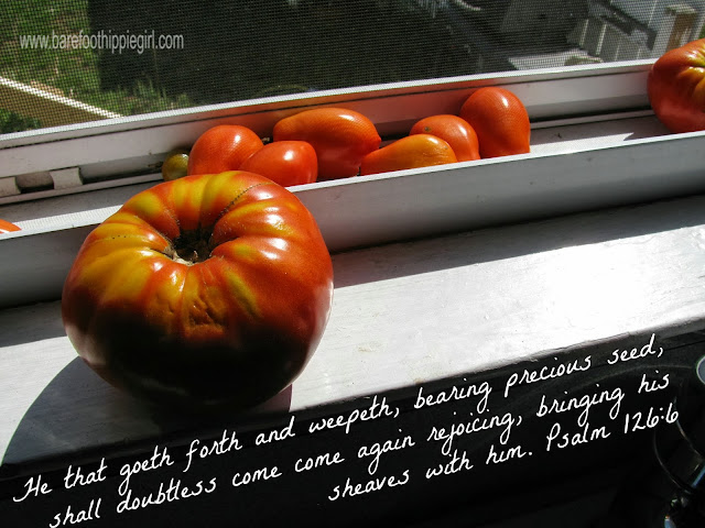 During the spring and summer, you turn over your soil, getting it ready for seeds. Then you mark your rows, and plant the tiny seeds every couple inches. You turn a light layer of dirt over them, and then start faithfully watering. Each and every day, morning or evening, unless there has been a rain.